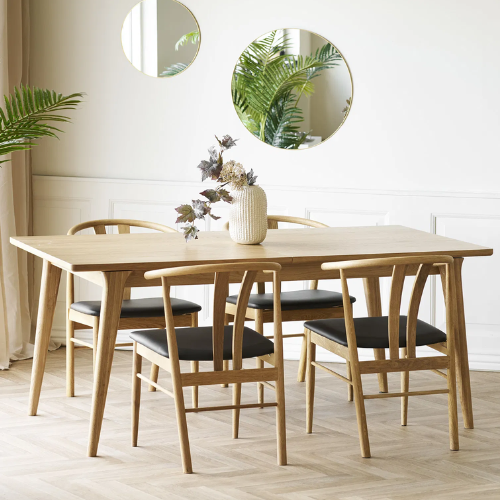 Spisebordsstol udført i egetræ træ med sort PU sæde.