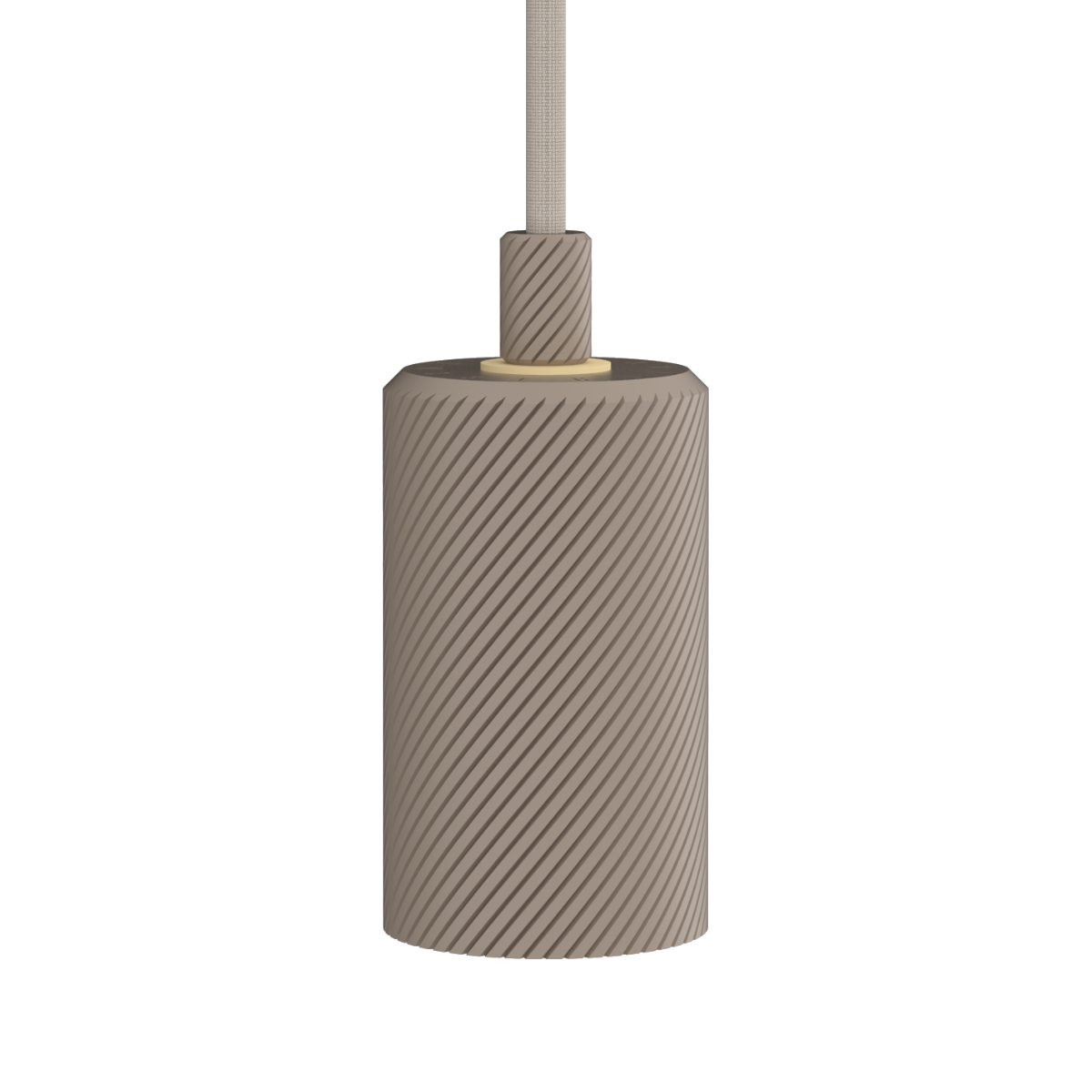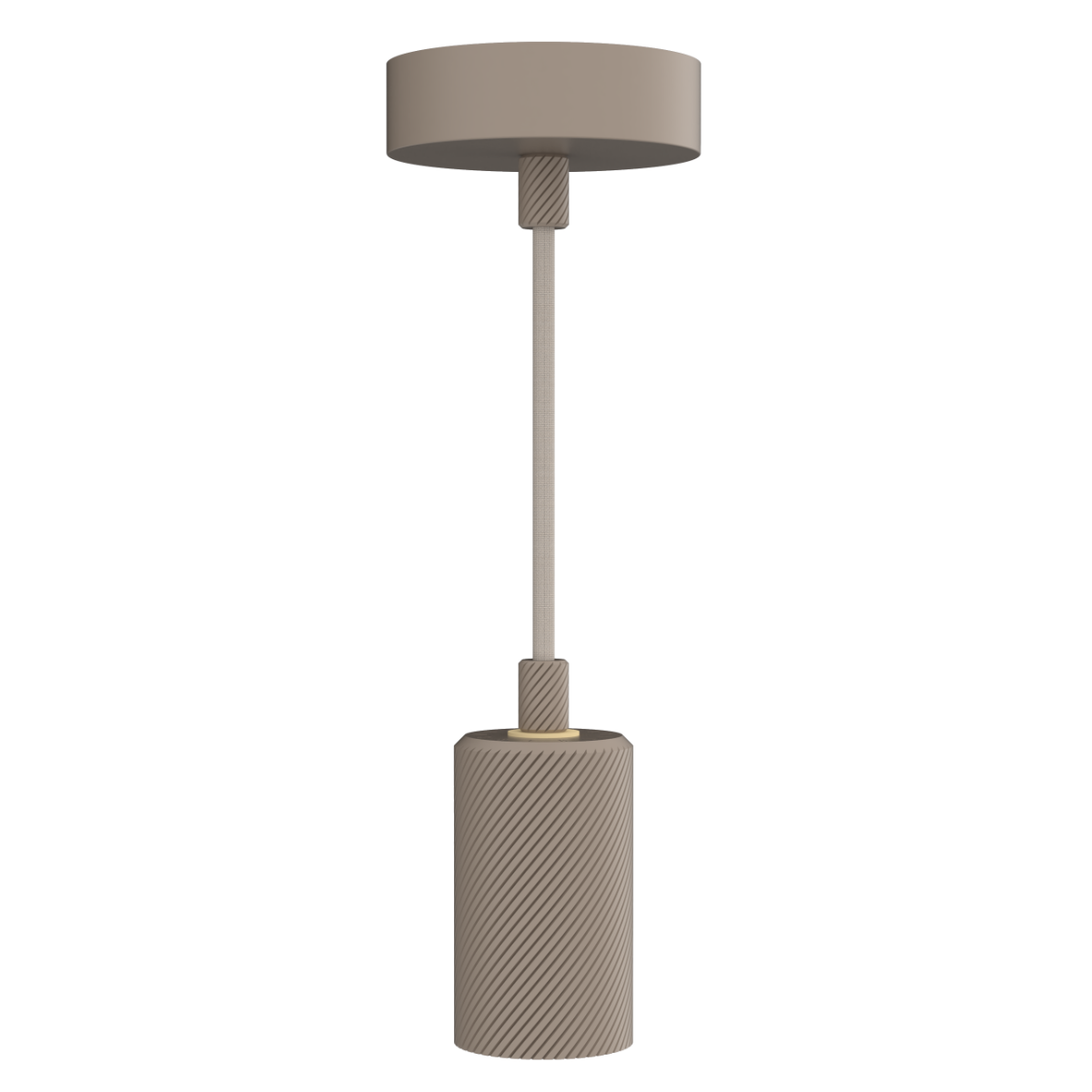 Pendlen har plastik loftroset. Soklen er riflet metal, stof ledning. Modellen fås også i farven sort