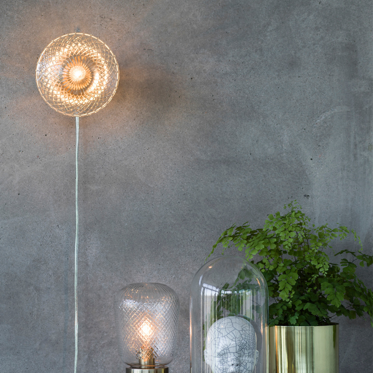 Transperant ledning på 2,5M, tænd/sluk afbryder ca. 30 cm fra lampen.